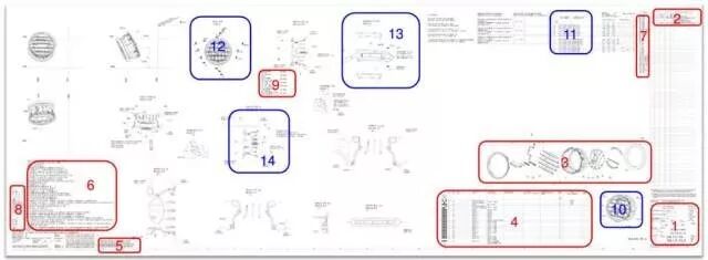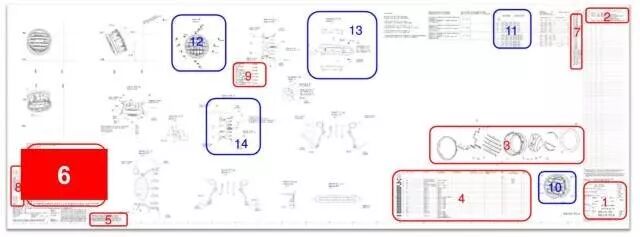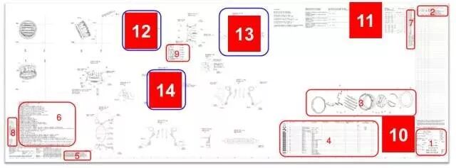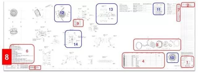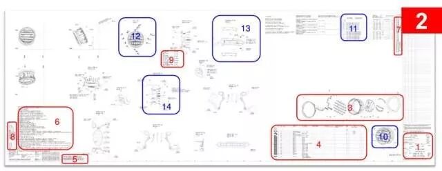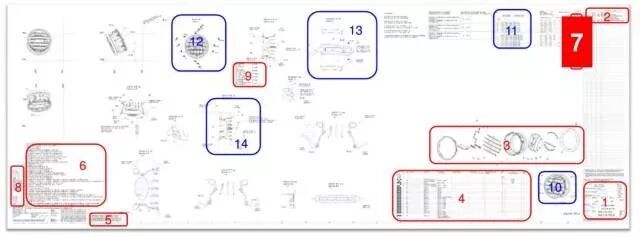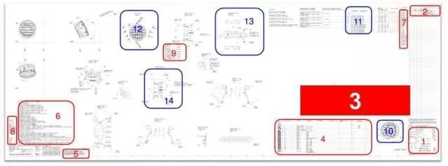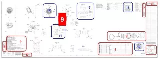 其中红框表示大众图纸通用信息,就是是大众图纸一般都会有的,不属于该零件特有的。