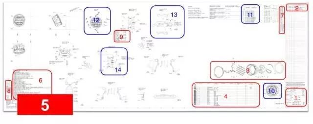 图纸的右侧看了好多,我们再将眼神往左移一移。“5”号区域则是BMG零件的说明区域。