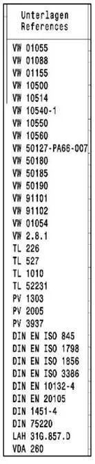 当你拿到大众的零件看的时候,会看到所用材料、零件号、时间钟、大众LOGO等标识,这些其实也是有章可依的,它应“9”号区域,零件标识信息。