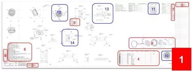 首先把你性感的小眼神投到图纸的右下角“1号”区域。