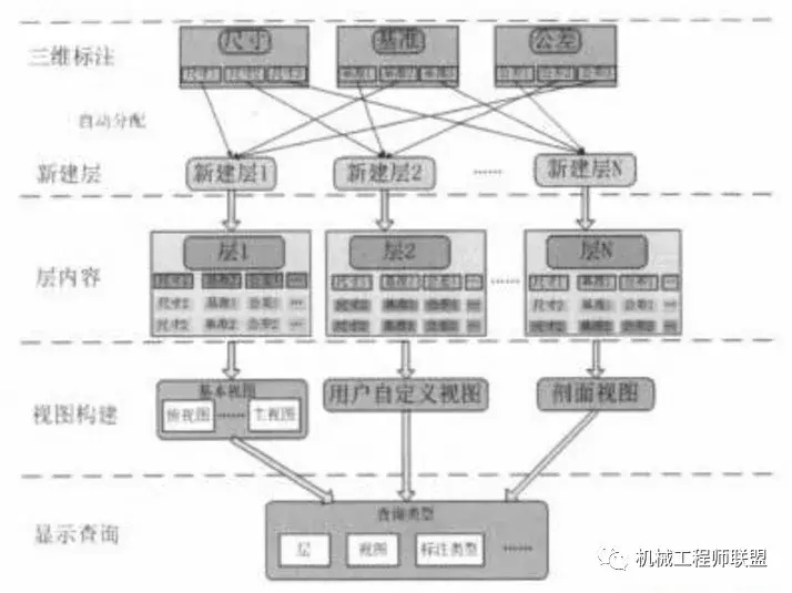 标注信息的结构化,就是将三维标注信息按照一定层次结构与产品的三维模型联系起来并且进行存储,使得这些信息可被计算机检索、管理。以往工程图纸上的标注信息是散乱的,检索和管理依靠人工进行,不可被计算机自动识别。本文通过视图、自定义面及层等方法来快速清晰地管理设计工艺相关信息。即在三维环境中构建如同二维图的各个视图,将不同类别的标注信息,在不同视图下进行分类组织管理。